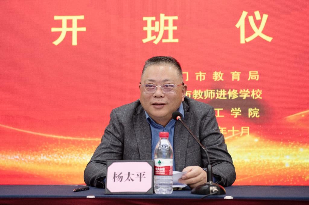 天门市教育局党组副书记、副局长杨太平,天门市教师进修学校党总支书记、校长王国雄,天门市教育局机关工委办公室许必祥主任,太阳集团官网8722龚云峰院长,本次项目首席专家太阳网集团tyc8722师范学院杨汉洲教授出席仪式。项目班主任邹弘烨主持仪式。