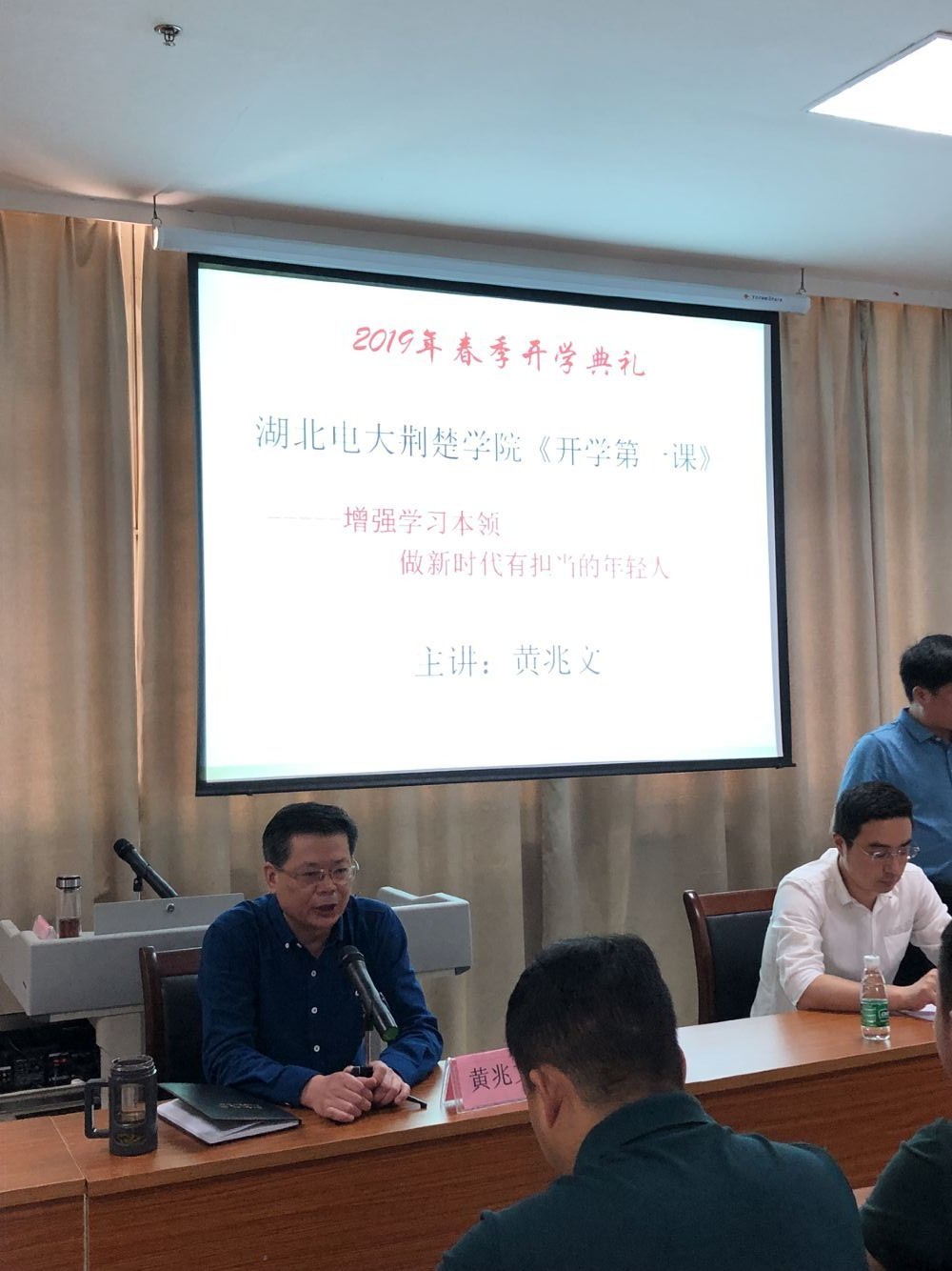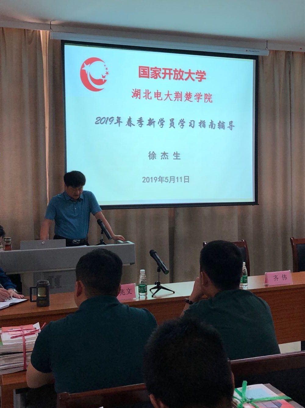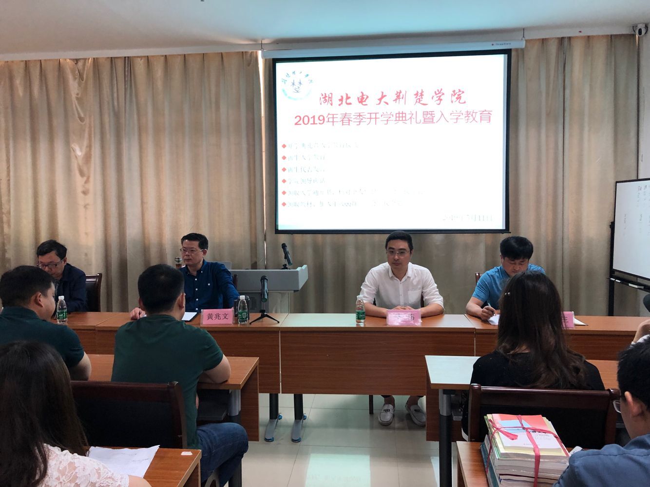 2019年5月11日上午9时30分,我院电大部(湖北电大荆楚学院)举办2019年春季开学典礼暨入学教育会议,会议由学院副院长胡兵主持。