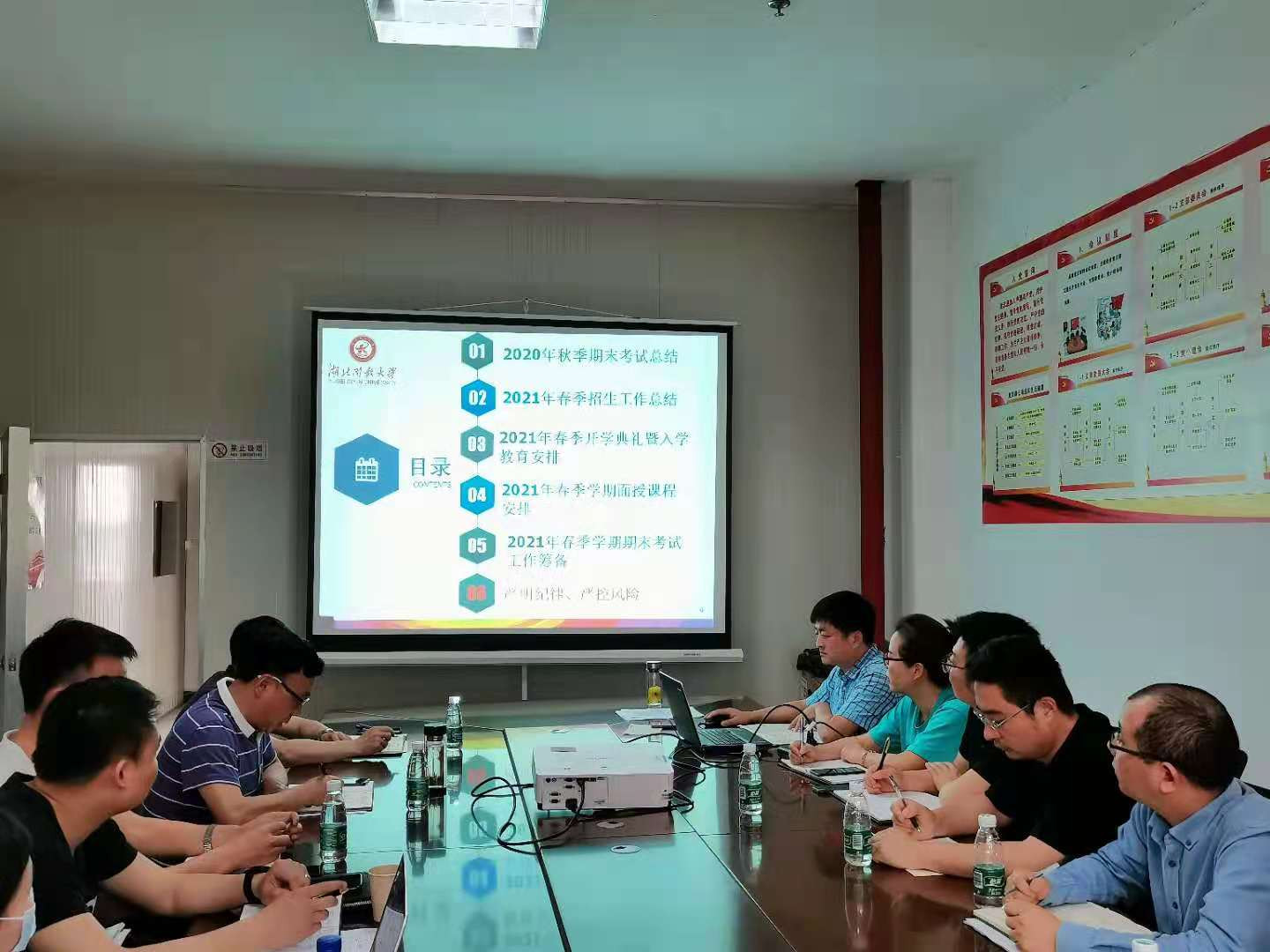 会上,电大部主任徐杰生总结了2020年秋季学期教学、期末考试等工作存在的问题;回顾了2021年春季招生及录取工作;部署了2021年春季学期教学、期末考试等相关工作。李晶老师对论文提交、评审等工作进行了培训。