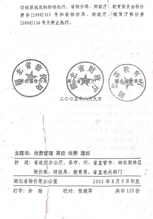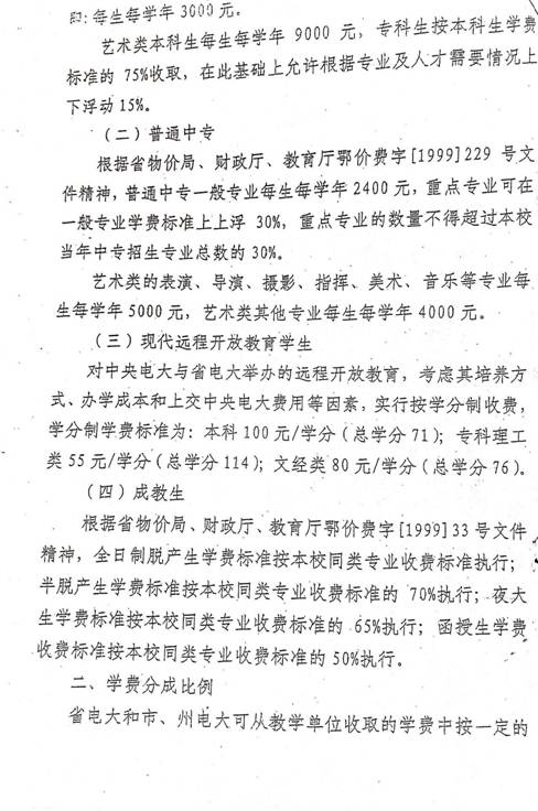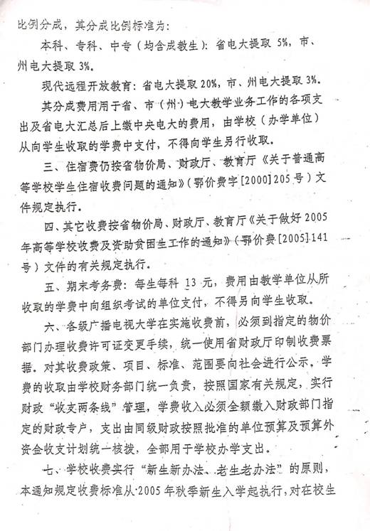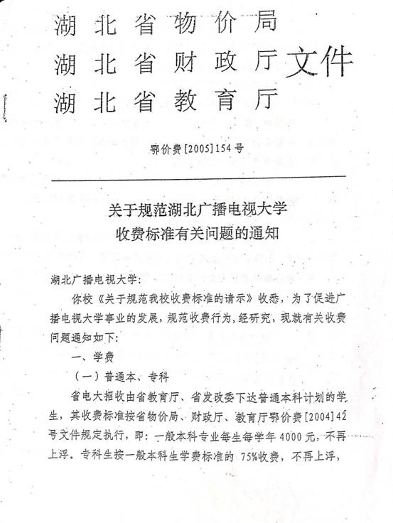关于规范湖北广播电视大学收费标准有关问题的通知 鄂价费[2005]154号