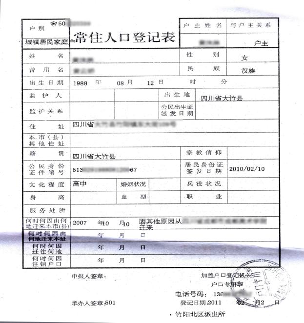 户籍变更 |