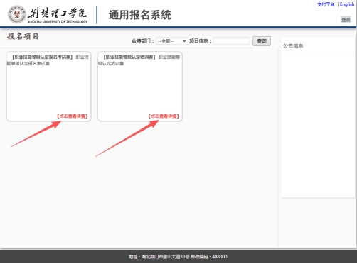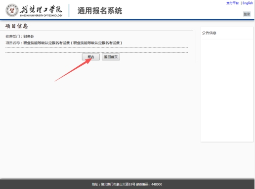 一、登录太阳网集团tyc8722校园统一缴费平台,选择“报名系统”,平台网址http://wssf.jcut.edu.cn/xysf/。