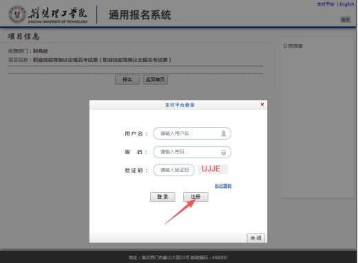 三、首次登录的必须选择“注册”,进行报名和缴费。